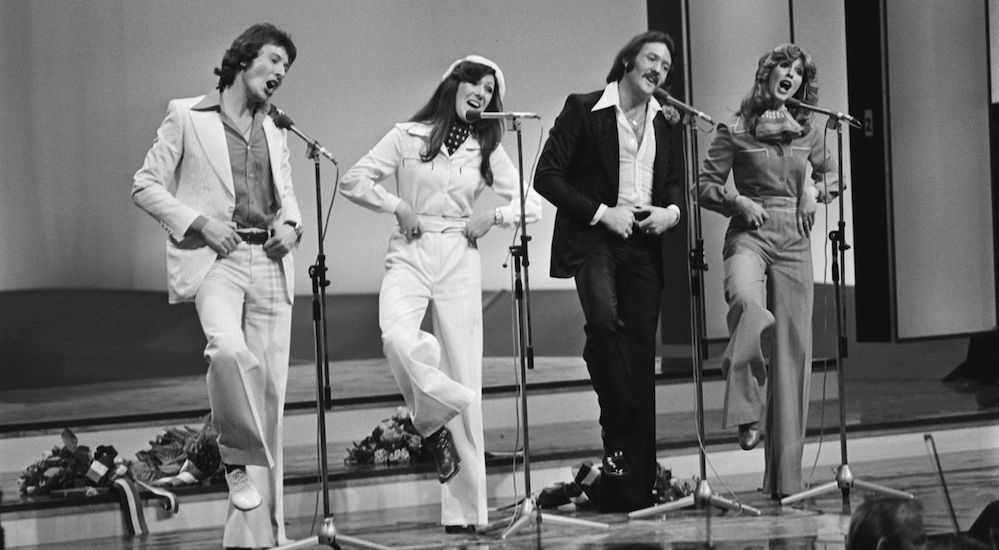 Så här kunde det också vara. Den här gullegubben är Tony Hiller som var med och skrev Brotherhood of Mans vinnarlåt 1976. Här jazzar han loss till Save your kisses for me i vinnarreprisen.