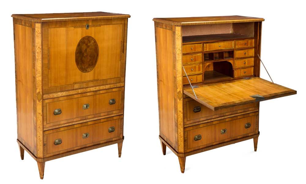 En möbel som verkligen väcker vördnad är chiffonjén. Frågan är om någon byrå som tillverkas i dag kommer att kunna mäta sig med den här skönheten. Ordet kommer för övrigt från franskans chiffonier och betyder ”liten byrå för förvaring av tyglappar”.