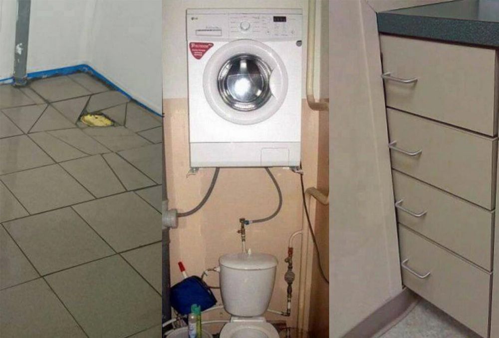 Om de här renoveringsjobben har genomförts av professionella hantverkare får vi hoppas att de hade en dålig dag på jobbet. Här är hysteriskt roliga exempel från Facebooksidan Fruktansvärt dåligt hantverk.