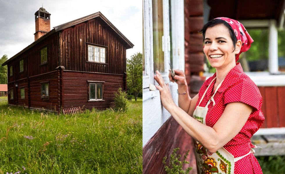 – Många tycker att jag är lite galen som köpt på mig så många gamla renoveringsobjekt. Men det är mitt sätt att koppla av. Om bara tak och skorsten är täta så kan restaureringen få ta tid. Det finns ju varken el eller vatten i husen, vilket är skönt när det åskar, säger Carolina och visar oss in i sitt stora faluröda timmerhus, där hon och döttrarna Olivia, 11 år, och Adela, 7 år, bor på somrarna.