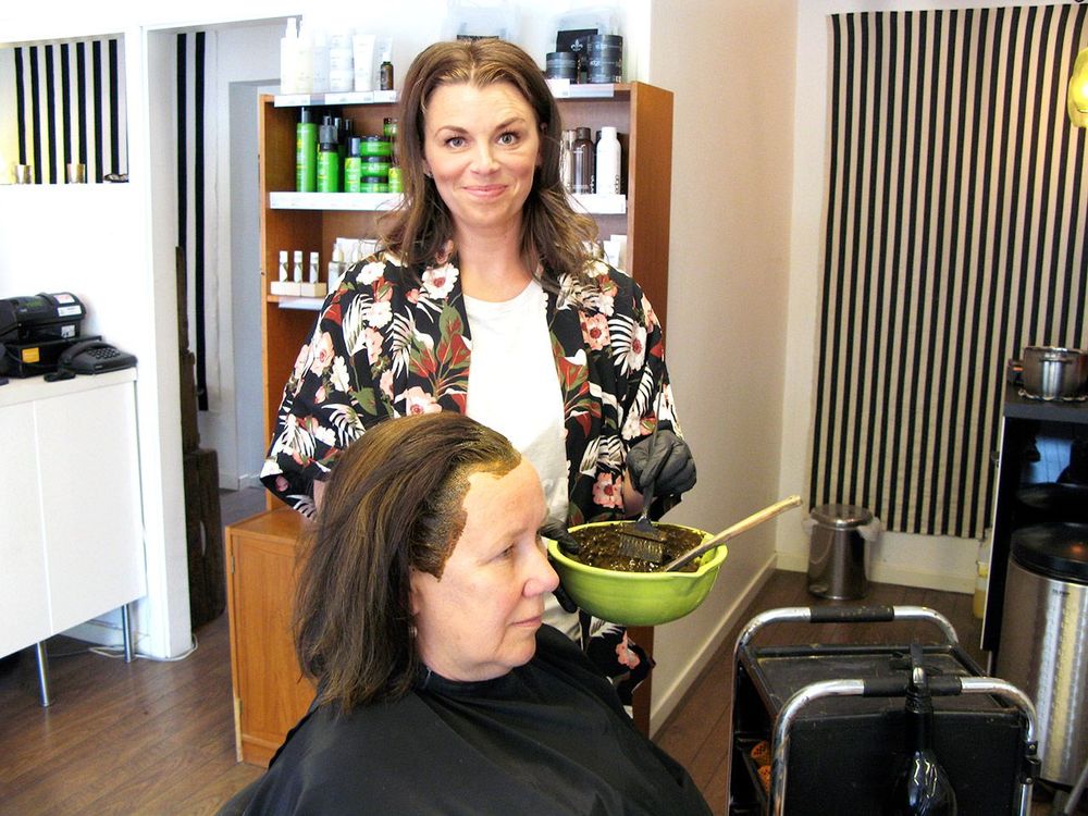 – När jag kom hit så berättade Frida att de hade slängt ut alla kemiska färger och undrade om jag vågade prova ett ekologiskt alternativ i stället. Eftersom jag hade flera bekanta som blivit allergiska av hårfärg tyckte jag att det kunde vara värt att prova.