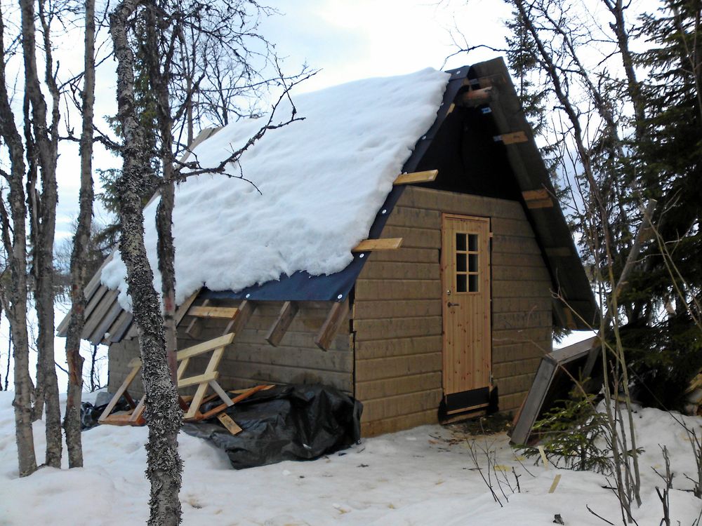 • Den stuga som vi eldade upp var inte från 1800-talet. Det var en nybyggd stuga med isolering. Att stugan förväxlas med en kåta beror på att den hade täckts med slanor, hönsnät, presenning och torv efter att länsstyrelsen bestämt att platsen skulle återställas.