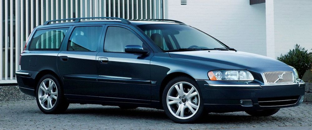 • De har en Volvo V70 från 1999. Den är nog mer ljusgrå, fast Anna Maria ville helst ha en röd.