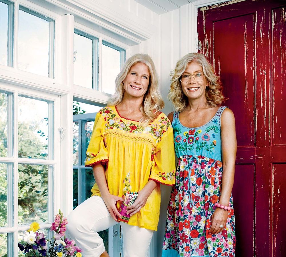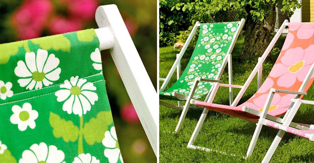 Pysseldrottningarna Susanna Zacke och Sania Hedengren gillar att fått nytt liv i gamla ting. De gamla skruttiga solstolarna från förrådet blommade upp med nyinköpt tyg från loppmarknaden.