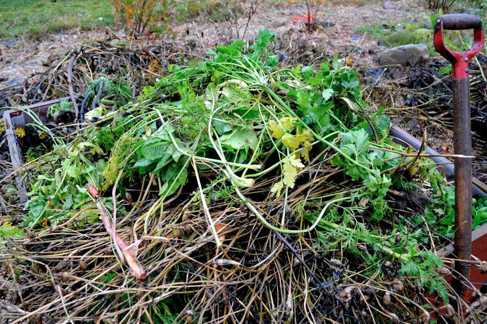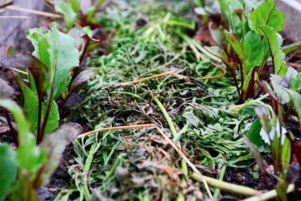 Växtdelar. Lägg blast och stjälkar efter skörd direkt i täckodlingen.