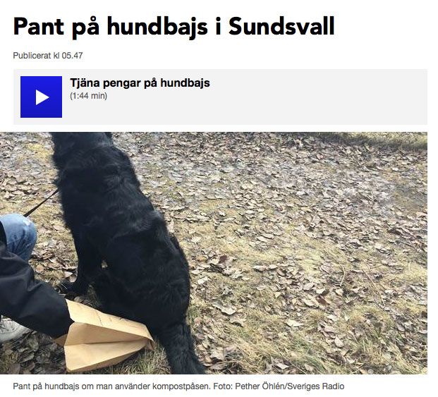 Sundsvalls kommun blir först i Sverige med att införa pant på hundbajs. 4 kronor hektot får du om du lämnar bajset i bruna papperspåsar på återvinningscentralerna i Sundsvalls kommun.