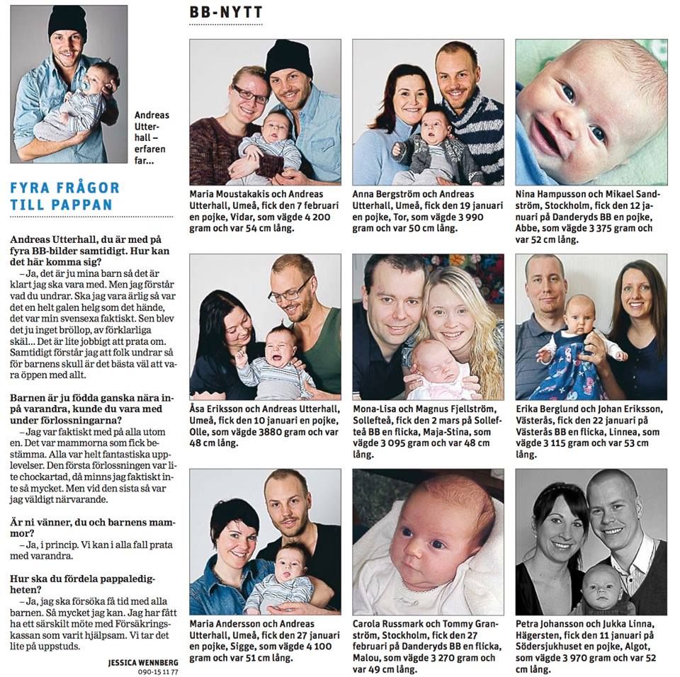 2010 publicerade Västerbottens-Kuriren en familjesida där samma pappa dyker upp fyra gånger, med fyra olika mammor.