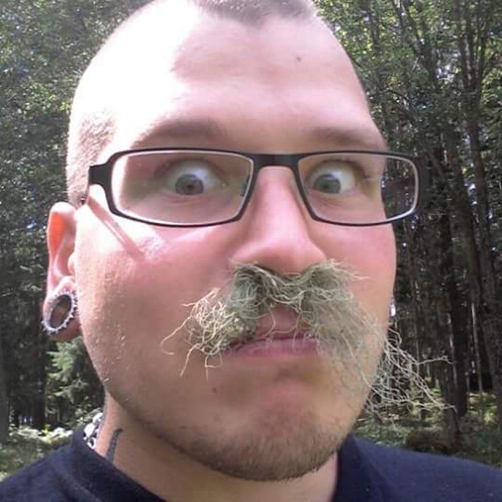 Situationskomik i skogen. Kitty Petterson skickade in bilden på sonen Jonathan Bergstens mustaschmossa. Han bor i Karlskoga.
