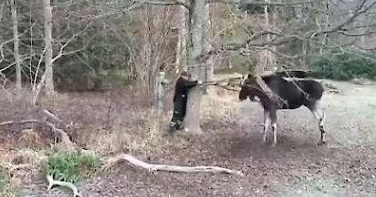 Vilken rörande insats! Se när Leif Gisslén räddar älgen som kämpar för sitt liv.