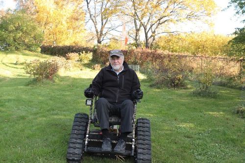 Vilken makalös manick - en specialrullstol gjord med bandvagnsteknik! Den har gett muskelsjuke Per Eliasson friheten tillbaka