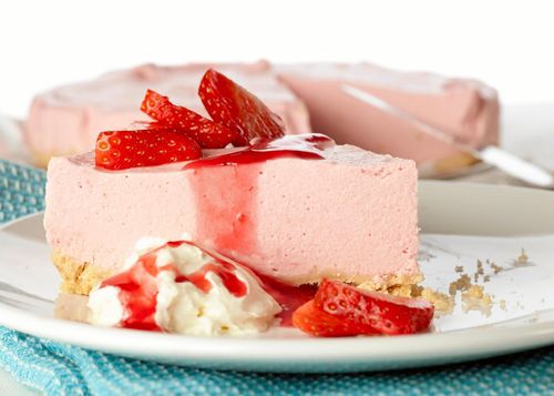 En len och krämig cheesecake med jordgubbar i en härlig, rosa färg. Mycket lättgjord och perfekt att servera som efterrätt.