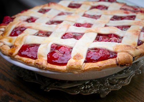 Härligt, somrigt recept på en klassisk körsbärspaj med vävt lock.