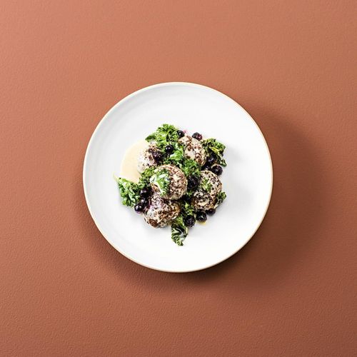 Tommy Myllymäkis viltköttbullar med grönkål & rårörda vinbär s