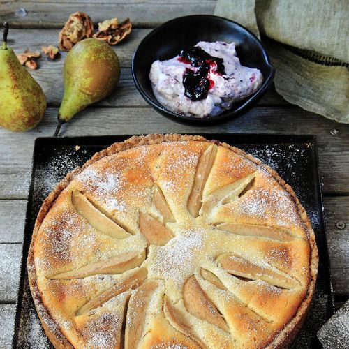 Lands Caroline Hofberg bjuder på höstens mumsigaste fikafavorit, Päronpaj med valnötter och blåbärsgrädde. Baka och njut!