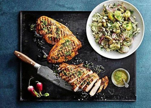 Grilla kycklingfiléer och servera med en härlig potatissallad – festen kan börja!