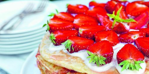 Anna Billings ljuvliga recept på pannkakstårta med jordgubbar kan vara sommarens härligaste recept.