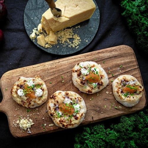 Små löjromspizzor med Västerbottensost är en alldeles underbar smakkombination i en förrätt.