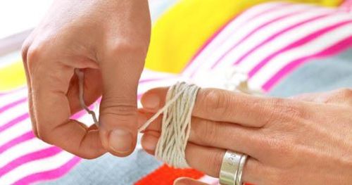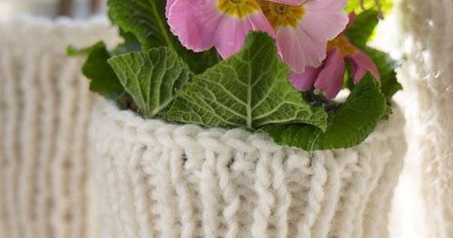 Snygga till en ful gammal kruka med hjälp av några garnrester. Vi använde rester av Lovvikagarn som vi hittade i garnkorgen.