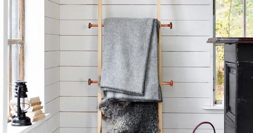 Fynda material på byggvaruhusen och fixa enkla hemmaprojekt. Här resulterade några trendiga kopparrör och sidostycken i trä i en snygg och praktiskt stege för hemmets alla rum.