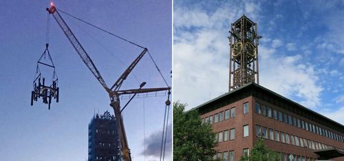Klocktornet i Kiruna har under förra veckan monterats ned. Många begav sig till platsen för att se den sista biten tas ned.