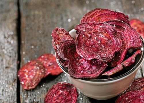 Chips på naturligt söta rödbetor är ett utmärkt snacks som du enkelt gör själv.