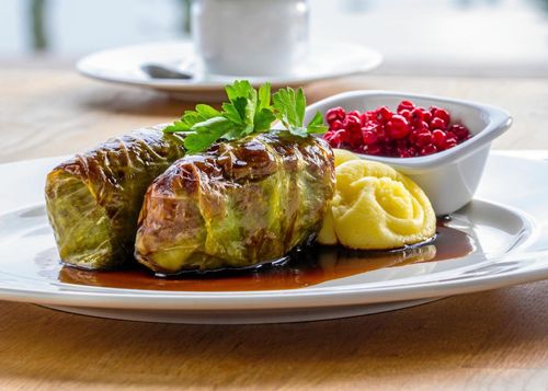 Kåldolmar med kokt potatis, lingonsylt och gräddsky är en riktig klassiker och älskad husmanskost.