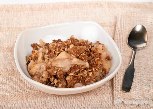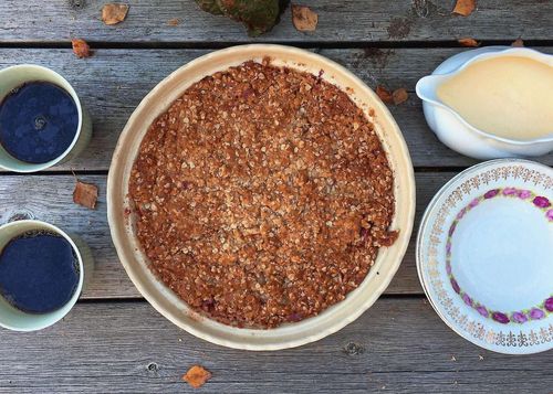 Oemotståndlig smulpaj med smörstekt kavring och äppelmos!
