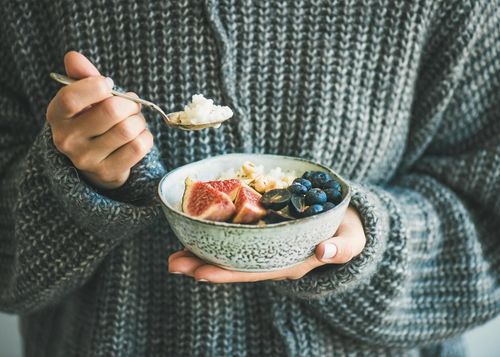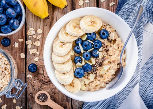 Havregrynsgröt är en stadig frukost full av fiber. Servera gärna med blåbär och banan.