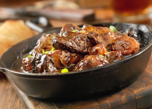 Nötkött, morötter och lök kokas ihop till en saftig gryta, en av svensk husmanskosts riktiga klassiker