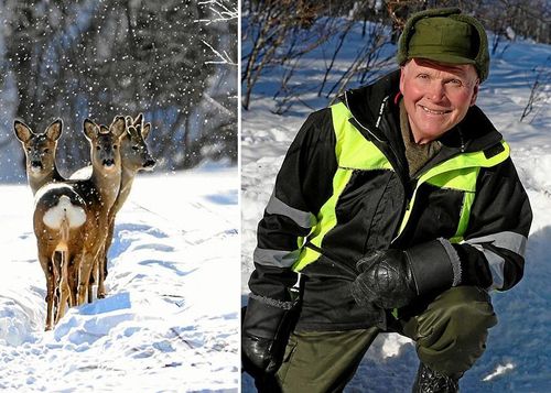Karl-Erik Larsson i Råneå hjälper rådjuren genom vintern. Hans fyrfota vänner ser också ut att känna igen honom när han kommer på sin snöskoter.
