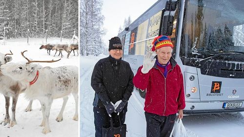 När bokbussen kommer till Forsträskhed låter Tina Eriksson renarna vänta tills hon lånat böcker.