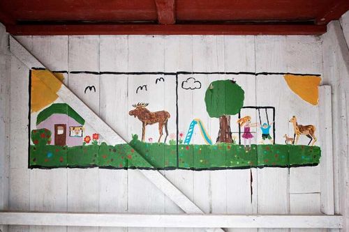En hemsnickrad busskur vid landsvägen, det är Anders borg.– Visst är den fin! Jag och tjejerna målade den tillsammans, säger finansministern stolt.