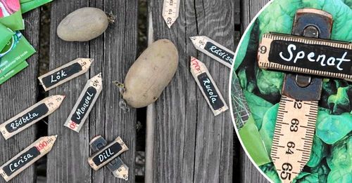Odlingsskyltar är bra att ha så man vet vad man odlat var. Charmigaste odlingsstickorna gör du av en gammal tumstock.