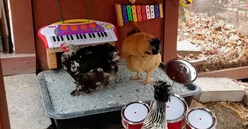 Höns är musikaliska! Det enda som fattas är instrumenten. Se filmen som visar hur det blir om en hönsgård utrustas med rätt grejer.