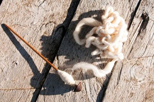Gör en egen slända och lär dig spinna garn på den. Allt som behövs är en träpinne, lite cernitlera, en liten metallkrok, lite garn och lite ull att spinna.