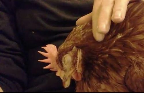 Oftast purrar hönor för att varna när något skrämmer men den här hönan verkar faktiskt gosa.