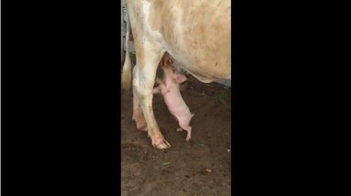 Vet du var mjölk, smör och grädde kommer ifrån? Det vet den här lille grisen också och han ger sig inte. Se honom stå på tå för att nå godsakerna.