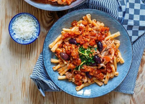 En vit pizza, pizza bianca, är en pizza utan tomatsås. Den kan också kallas pizza bianco och har blivit mer och mer populär. Här görs den med sidfläsk och rosésallad som ger sälta och beska och den är riktigt fräsch. Receptet är gjort av Tove Nilsson.