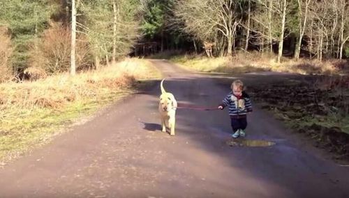 Ett barn, en pöl och en hund. Mer behövs inte för ett att göra ett underbart litet filmklipp att njuta av!