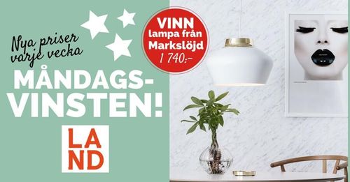 Denna vecka tävlar ut lampan Kom från Markslöjd värde 1740 kronor.