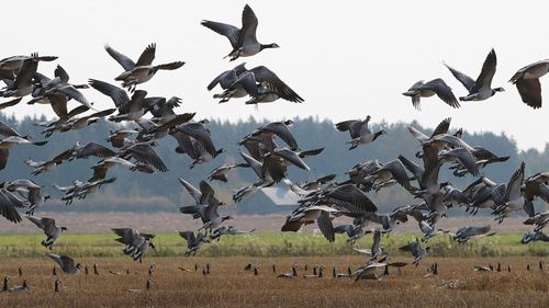 Skåne har drabbats av en gåsinvasion, där fåglarna genom att äta och trampa orsakar stora skador på grödorna. När jakt inte räcker rycker skrämselkonsulter ut med gasolkanoner och ballong-Hulkar.