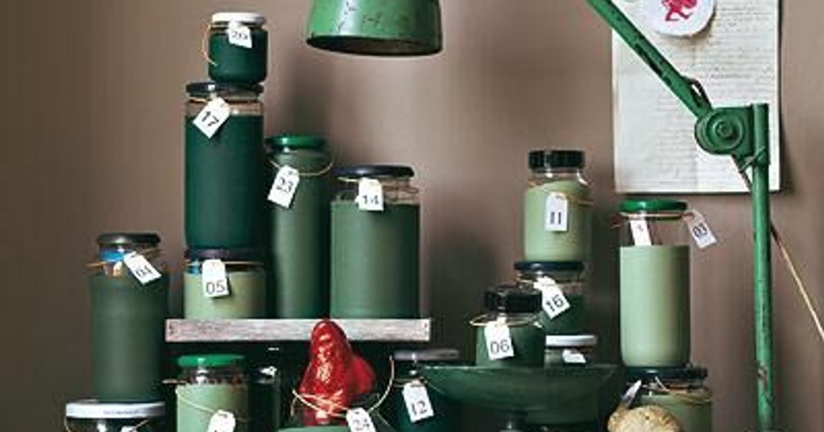 Fördelen med den här kalendern är att du kan variera storleken på glasburkarna för att passa innehållet. Dessutom är det smart att återbruka glasen!
