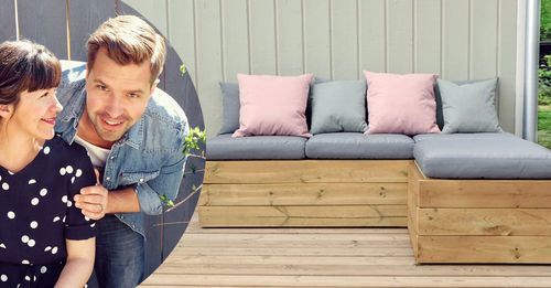 Nu vill vi njuta ute! David och Sandras fina soffa med praktisk förvaring under locket, bygger du enkelt själv.