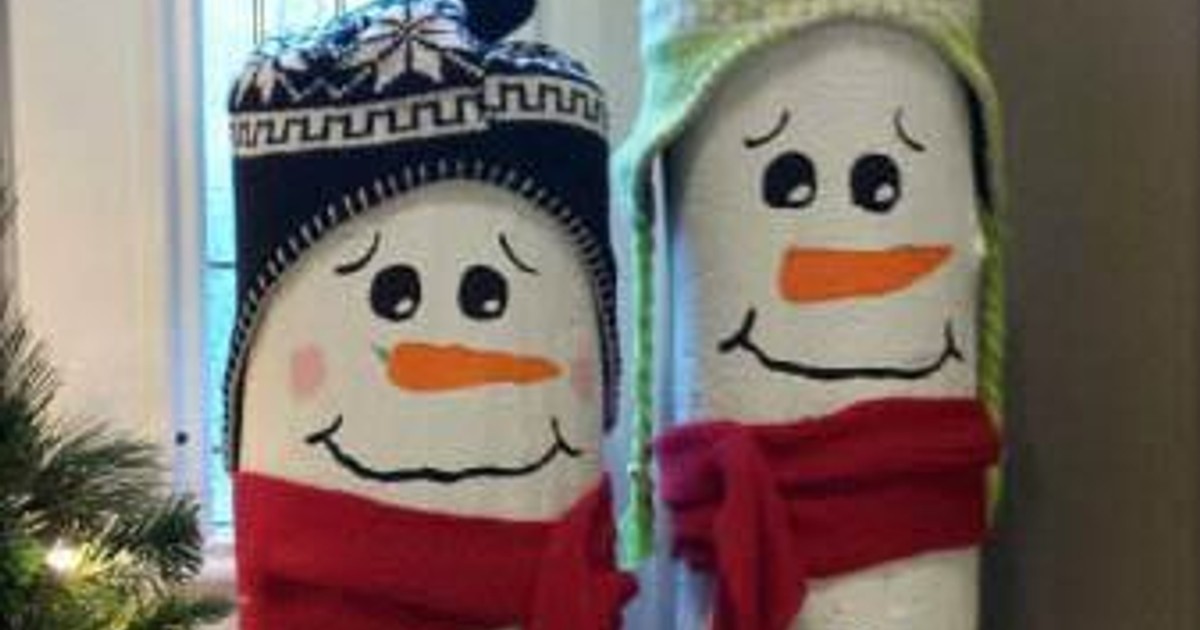 Dessa fina snögubbar tinar inte inomhus. De är nämligen tillverkade av två mindre stockar.