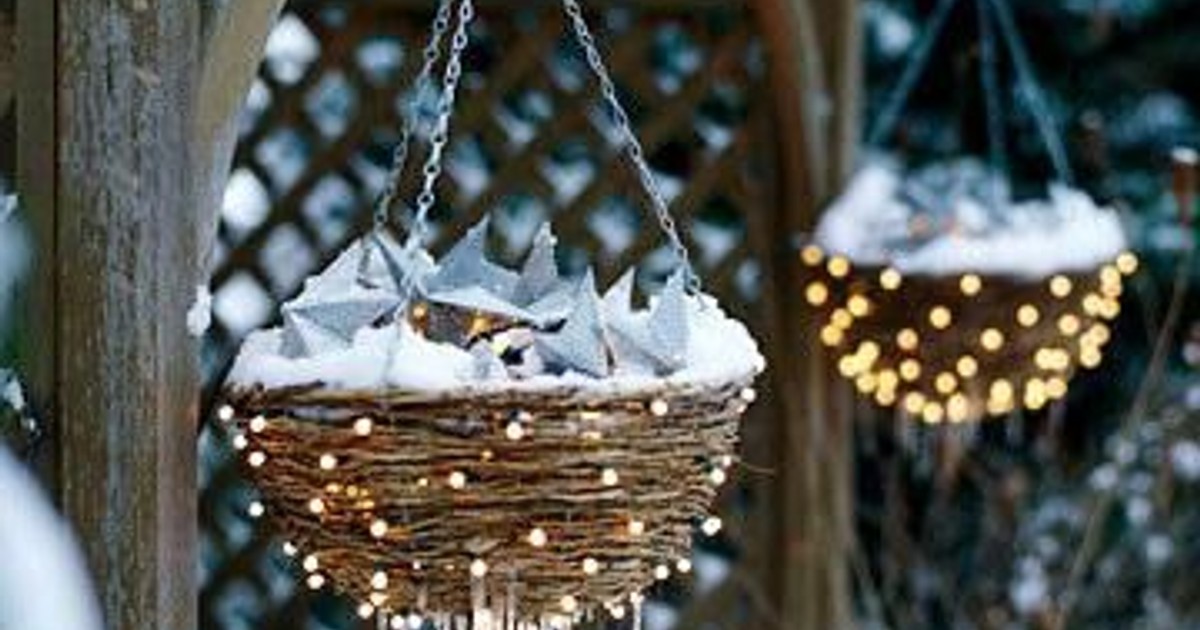 Använd dina blomsterkorgar även på hösten och vintern och låt dem bli mysiga ljuskällor i trädgården.