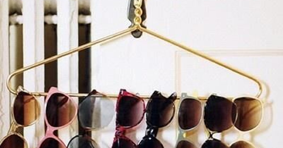 I väntan på sol kan du förvara dina solbrillor på detta smarta sätt. Allt som behövs är en galge, och den får gärna vara guldfärgad.