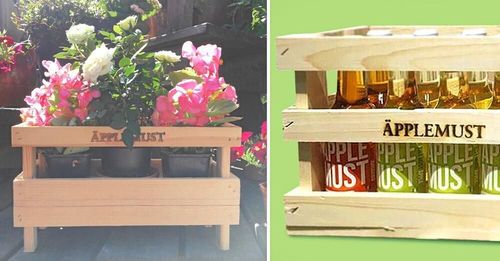 Har du köpt äppelmust på Ikea och har för många drickabackar hemma? Låt fantasin flöda och gör ett fint blombord.