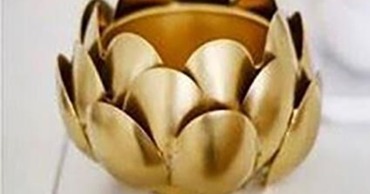 Har du också plastskedar över från kalaset? Släng dem inte! Gör en ljuslykta i form av en näckros i guld blir som ett litet smycke på bordet.