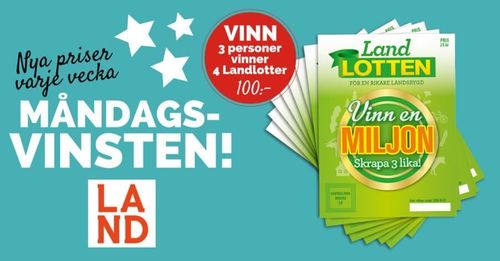 Denna vecka tävlar vi ut 4 Landlotter med vinst på 4:e lott. Vi drar 3 vinnare!