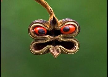 Den kallas för krabb-öga och ser inte snäll ut. Det är den inte heller. Fröet innehåller giftet abrin som kan ta död på folk och det saknas motgift.